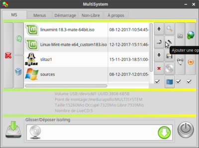 - Cliquer sur le petit stylo du menu d'édition d'options de démarrage